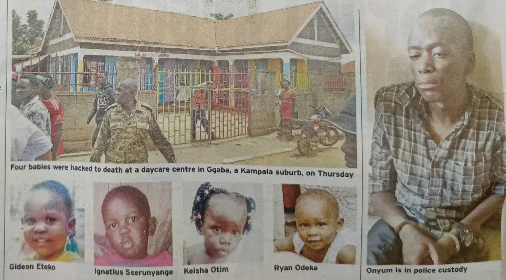 The suspect, Christopher Okello Onyumu, allegedly carried out the attack on April 2, 2026, after posing as a parent to gain access to the daycare.