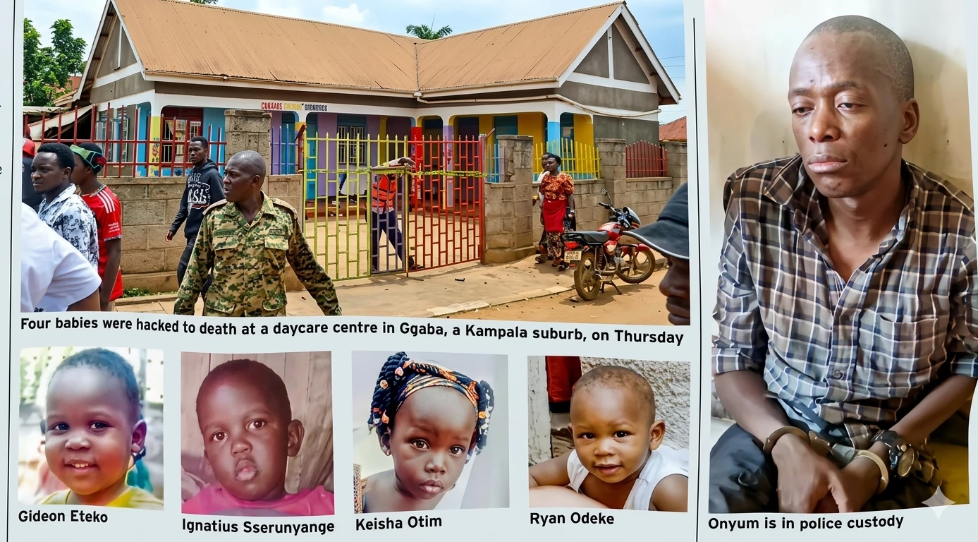 The suspect is accused of carrying out the brutal attack on April 2, 2026, at a daycare center in Ggaba, Kampala, where four children lost their lives.